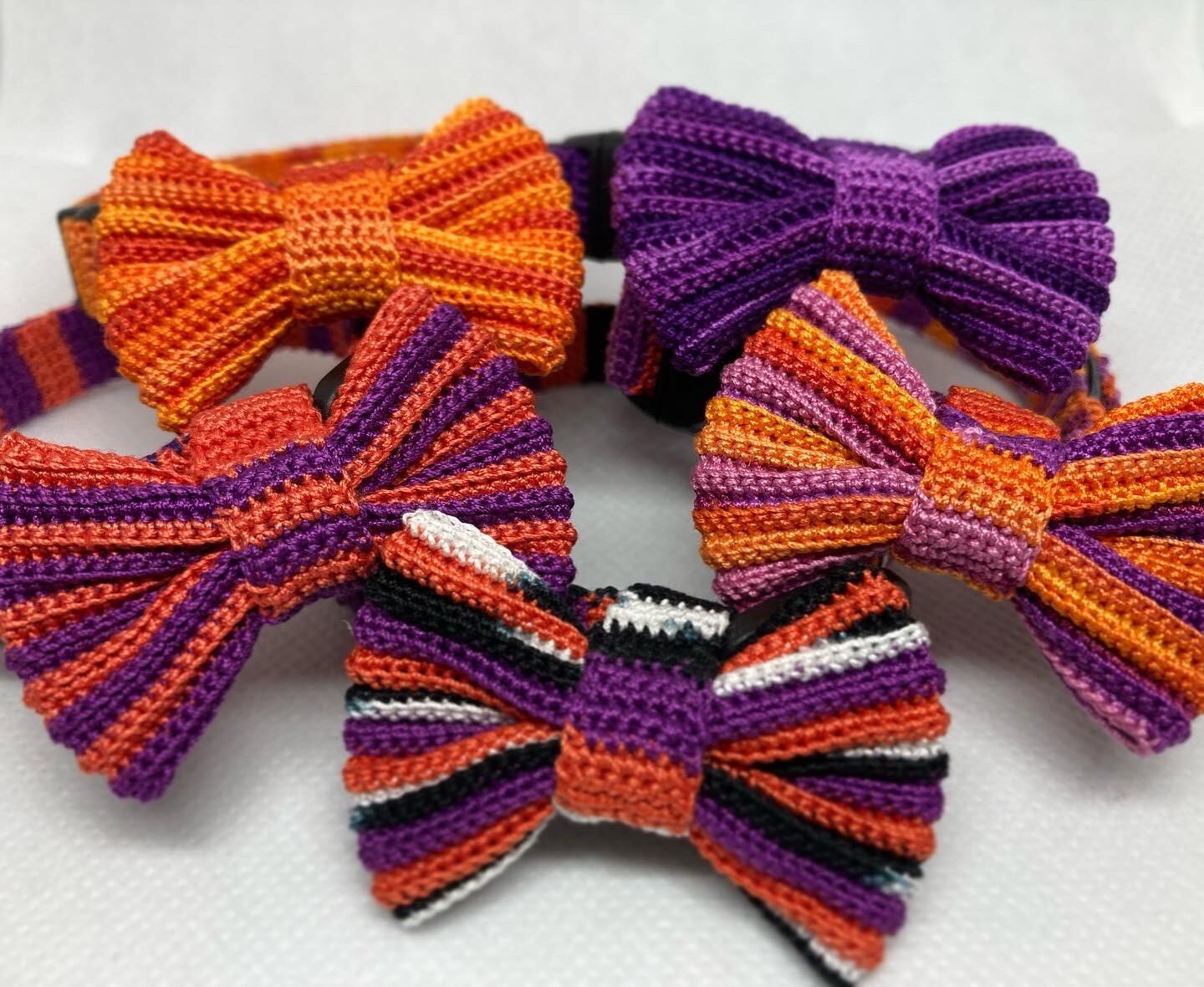 ハンドメイド(手編み)で一点一点製作したネコさん用の首輪です。