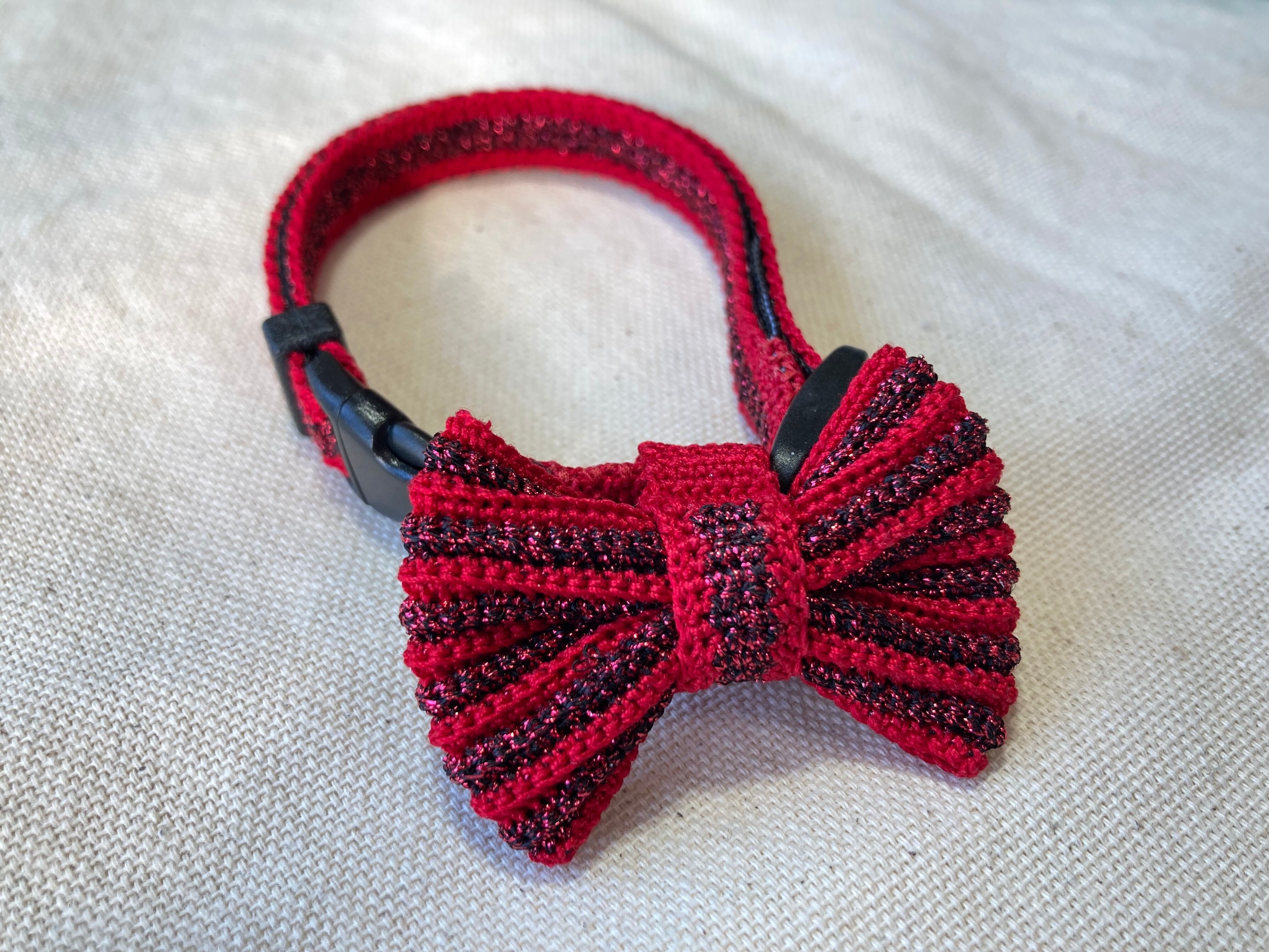 ハンドメイド(手編み)で一点一点製作したネコさん用の首輪です。
